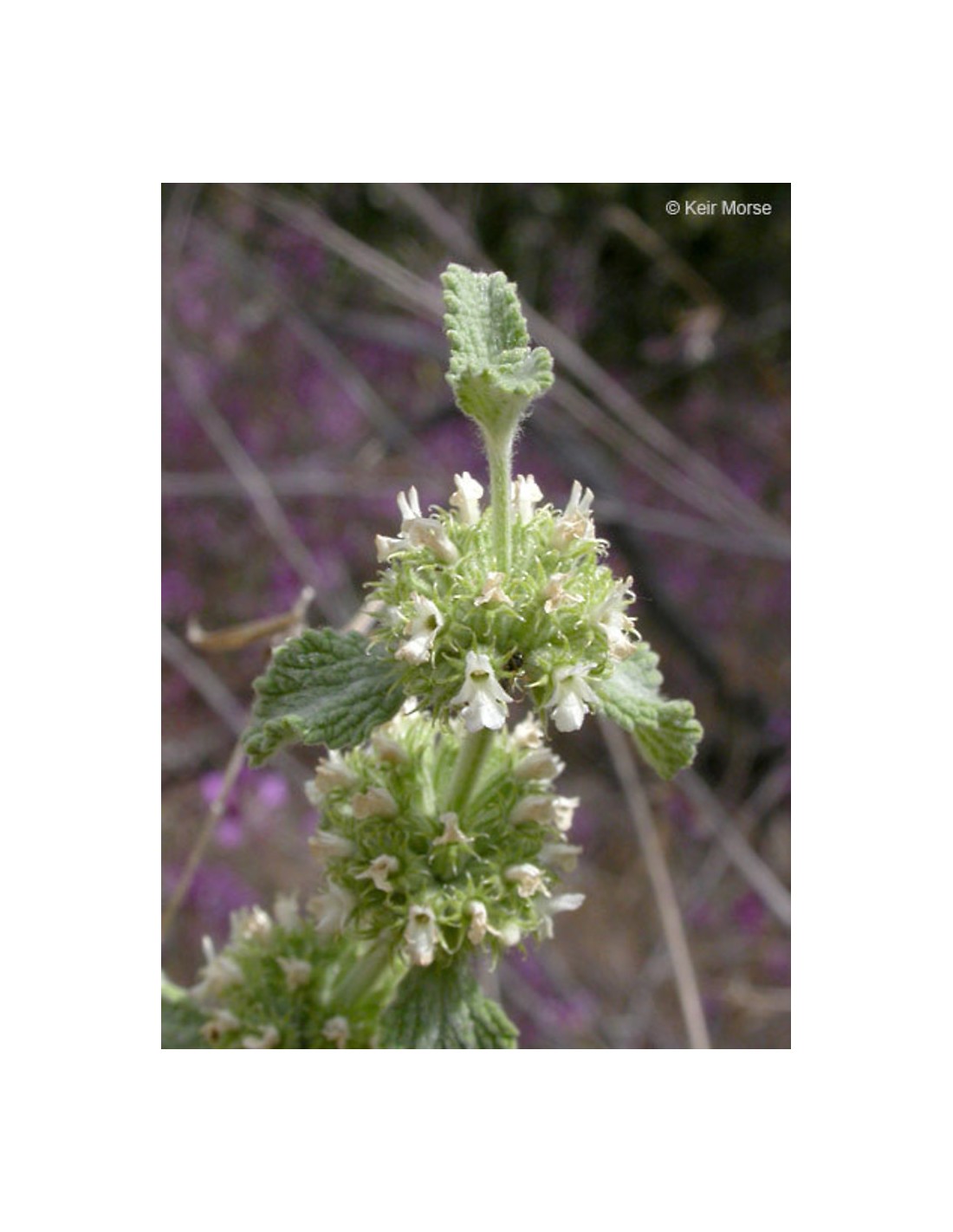 Descripción: Hierba perenne, de 20-80 cm, algo leñosa en la base, con tallos erectos, con frecuencia lanosos. Sus hojas son parecidas a la de la hierbabuena pero más blanquecina y sus flores tambieén son parecidas a las de las mentas, aunque el sabor de esta planta es mucho más amargo. Vive en lugares áridos, en bordes de camino o herbazales nitrófilos, hasta 1500 m. Florece de febrero a noviembre. Se encuentra en toda Europa y el norte de África; actualmente se ha extendido y vive en toda España peninsular e insular.